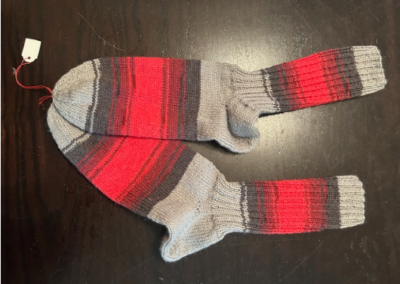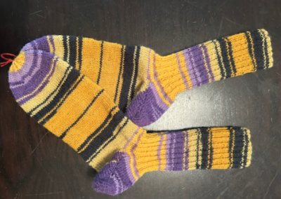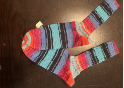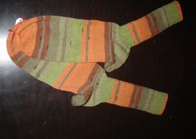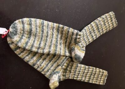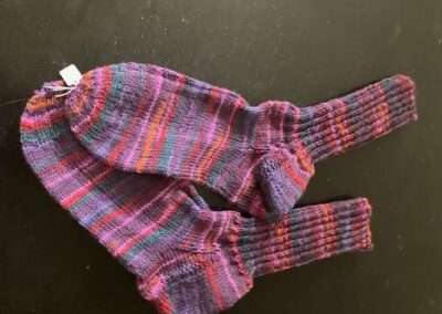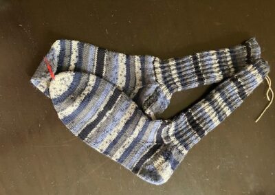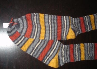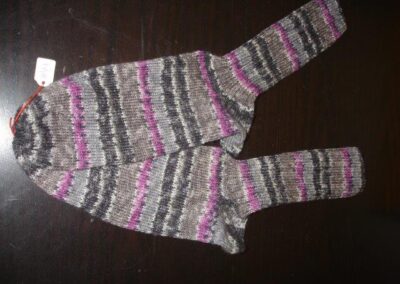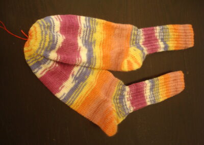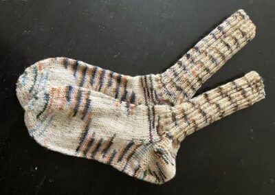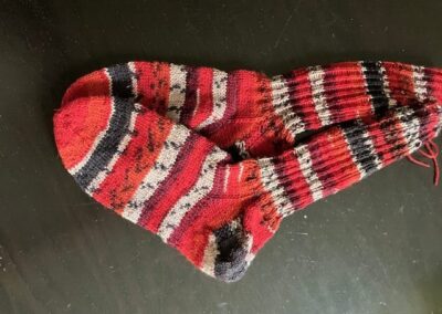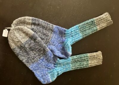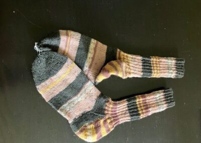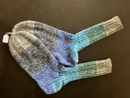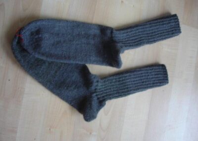 Wir sind spezialisiert auf Socken und manchmal entstehen aus den Woll-Resten Decken, Jacken und Hüttenfinken.